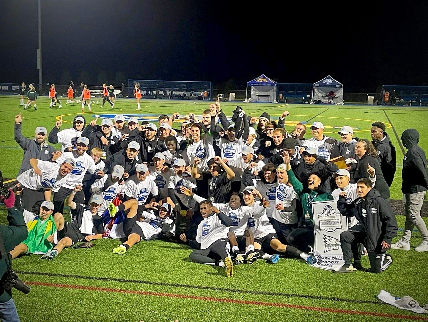 The MVCC Men’s Soccer Team won its first national championship in program history after defeating six-time defending champions Dallas Richland 2-1 on Sunday, Nov. 17, during the NJCAA Division III Men's Soccer Championship hosted by Genesee Community College in Batavia, N.Y.